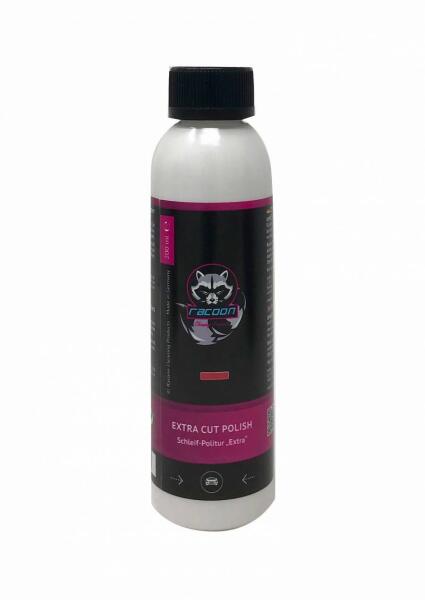 A Racoon Extra Cut egy durva polírozó paszta, amely úgy lett megalkotva, hogy a mély karcokat is eltávolítsa a fényezésből. A Racoon Extra Cut egy durva polírozó paszta, amely úgy lett megalkotva, hogy a mély karcokat is eltávolítsa a fényezésből. A termék, csiszolási mintát hagy, ami könnyen eltávolítható a Racoon Perfect Pearl finom polírozóval. Excenteres és körkör