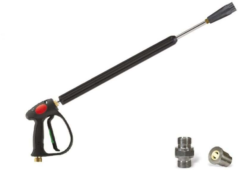 Komplett hablándzsa MV925 (zöld ravasz) választható méretű fúvóka és közcsavar csatlakozással A termékösszeállítás használatra kész szerszám , kompletten tartalmazza a hablándzsa minden alkatrészét. Az alap összeállítás az alábbiakból áll: - magasnyomású mosópisztoly zöld ravasszal, MV 925 típusú forgó csatlakozással alacsony nyomáson átengedi a vizet - 500 m
