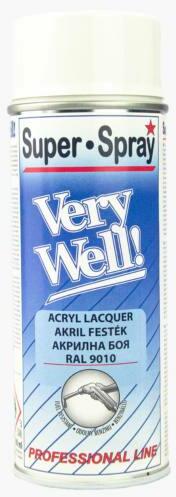 VERY WELL FEHÉR FÉNYES 400ML Very Well Akril festék spray - Akril alapú benzin és olajálló spray - Gyorsan szárad. -Kitűnően alkalmazható fémfelületeken is. - Színtelen lakkal lefújva ellenállóságát még inkább növelhetjük. 1583