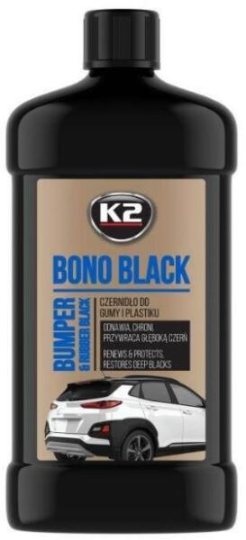 Feketítőszer gumihoz és műanyaghoz. Visszaállítja az eredeti színt és finom fényt ad. Védelmet nyújt a nedvesség, a só és a negatív időjárási viszonyok ellen, valamint megakadályozza a szennyeződések felhalmozódását. Tökéletes a kifakult és elszíneződött elemek sötétítésére. A K2 BONO BLACK erősen tapad az anyagokhoz, és visszaadja a természetes színt, emelle