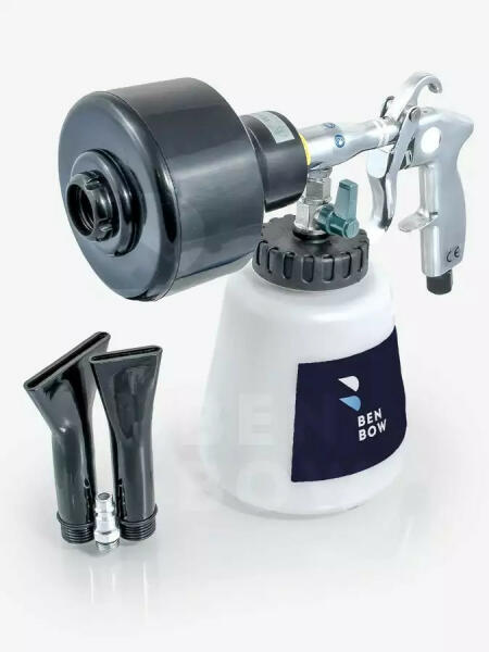 BenBow Classic 013 Pneumatikus Habosító Pisztoly A BenBow Foam Machine Premium egy sűrített levegővel működő habosító pisztoly, amelyet felületek habosítására használnak. Kiválóan működik kívül és belül is az autóban. A készüléknek van egy 6dl űrtartalmú tartálya, amely vegyszerekkel van feltöltve. Nagyon sűrű habot hoz létre, aminek köszönhetően a vegyszerek t