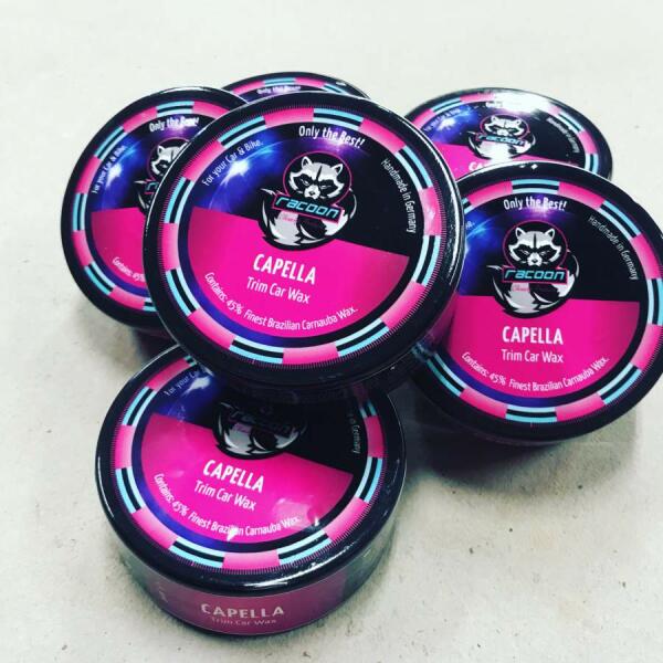 A Racoon Trim Car Wax speciálisan a műanyagok számára!Made in Germany! Az új és kizárólag kézzel készített Racoon Trim Car Wax - CAPELLA! A műanyag színmélysége optimálisan felfrissül, visszanyeri a matt felületet és az eredeti puha tapintást! Még a szürke, törékeny műanyag is megjelenik eredeti színében !!! Csak a legjobb, tiszta brazil karnauba viasz 45% -ban legmagasa