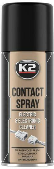 K2 | Kontaktus tisztító spray | 400ml A K2 Contact Spray egy zsírtalanító és védőszer az elektromos alkatrészekhez. Oxidok, szulfidok és egyéb szennyeződések eltávolítására szolgál, behatoló és oldó tulajdonságokkal rendelkezik. Nem vezet áramot, véd a nedvességtől, a korróziótól és a rozsdától. Olyan alkatrészekhez használható, mint: csatlakozók, érintkezők,