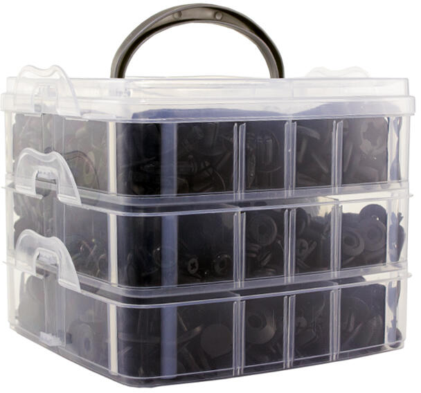 Eladási egység: 1db Univerzális szorító patent készlet. Alkalmas a legtöbb autó belső és külső műanyag elemeinek, doblemezeinek rögzítésére. Az erős műanyagból készült patentek hosszú élettartamra lettek tervezve. A készlet összesen 620 db különböző típusú és méretű patentet tartalmaz. A készlet részét képezi továbbá 5 db szerszám is, amely segítségével
