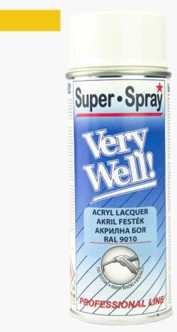 Very Well Napsárga RAL 1021 400ml Very Well Akril festék spray - Akril alapú benzin és olajálló spray - Gyorsan szárad. -Kitűnően alkalmazható fémfelületeken is. - Színtelen lakkal lefújva ellenállóságát még inkább növelhetjük. 1583
