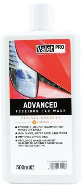 Valet Pro Advanced Poseidon Car Wash ERŐTELJES, MÉGIS KÍMÉLETES AUTÓSAMPON, AMELY KÖNNYEN LEÖBLÍTHETŐ MAGAS FÉNYŰ, VÍZTASZÍTÓ FELÜLETET HAGY MAGA UTÁN JAVÍTJA A SZÁRADÁSI IDŐT MEGHOSSZABBÍTJA A VIASZOK ÉS A FESTÉKTÖMÍTŐ ANYAGOK ÉLETTARTAMÁT EGY ÁLDOZATOS, MAGASFÉNYŰ BEVONAT HOZZÁADÁSÁVAL A MOSÓSZIVACS VAGY A KÉZI KESZTYŰ SIKLIK A FÉNYEZÉS FELETT Az Advanced P