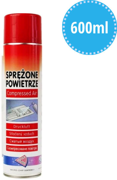 Sűrített levegős spray elektronika tisztításához 600 ml A sűrített levegő ideális tisztítószer az elektronikához, rendkívül erős, elsősorban a por és a szennyeződések kifújásához nehezen hozzáférhető helyekről, mint például ventilátorok, hűtőbordák, alaplapok és egyéb NYÁK-ok, optikai meghajtók, nyomtatók, faxok, laptopok, fényképezőgépek és objektívek,