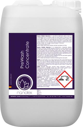 A Nanolex PreWash Concentrate egy rendkívül hatékony, erősen habzó lúgos előmosó. A felületaktív anyagok, építőanyagok és oldószerek gondosan kiegyensúlyozott keveréke fellazítja a szennyeződéseket, és eltávolítja a legmakacsabb szennyeződéseket, például a rovarokat, olajokat, zsírt és kormot. A Nanolex PreWash Concentrate kiválóan alkalmas a természetes viaszok (a