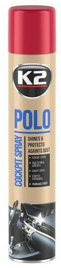 K2 | POLO műszerfalápoló | cseresznye illat | fényes hatás | 750 ml A K2 POLO COCKPIT spray a műszerfal ápolására és tisztítására. Speciális nanorészecskéket tartalmaz, melyeknek köszönhetően visszaadja a megtisztított elemek eredeti színét és fényét, valamint kifejező textúráját. Antisztatikus hatású, véd a por ellen és véd az UV-sugarak káros hatásaitól. Mega