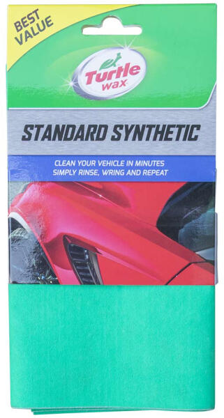 Turtle Wax Standard Synthetic, Szintetikus törlőkendő A Standard Synthetic Cloth Turtle Wax egy erős vízelnyelő tulajdonságú kendő, amelyet különböző autófelületek szárítására terveztek. A speciális viszkóz és vinil anyag nagyon tartós és ellenáll a különféle vegyszereknek. Lehetővé teszi a maradék víz gyors és hatékony eltávolítását a karosszériáról és az