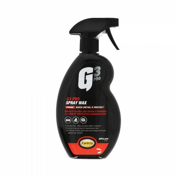 A G3 Pro Spray Wax javítja a felület fényességét és meghosszabbítja a korábban felvitt viaszos felületeket. Szilikonmentes, hőmérséklet-érzékeny, UV-gátlókat tartalmaz. Kiemelkedő vízlepergető tulajdonságok, amelyek hosszabb ideig tisztán tartják járművét. Nagyon gyors és gazdaságos, mert csak az azonnali enyhe köd elég az optimális teljesítményhez. Nem szennyezi a