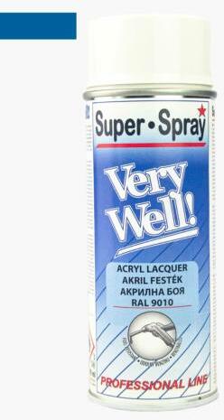 Very Well Sötét kék RAL 5005 400ml Very Well Akril festék spray - Akril alapú benzin és olajálló spray - Gyorsan szárad. -Kitűnően alkalmazható fémfelületeken is. - Színtelen lakkal lefújva ellenállóságát még inkább növelhetjük. 1583