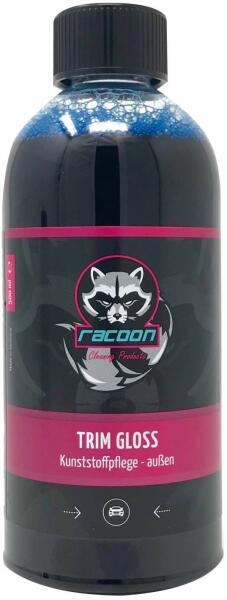 Racoon Trim Gloss Szilikon mentes műanyagápoló külső felületekre. A nagyon produktív kombinált termék intenzíven frissítő hatást fejt ki a már elhalványult és megöregedett műanyag alkatrészekre, gátolja a szennyeződések lerakódását, UV-védelmet nyújt a műanyag számára. Vízlepergető hatású. Használat előtt jól rázzuk fel! Javasoljuk, hogy egyszer használatos k