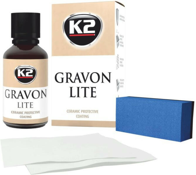 A K2 Gravon Lite a legegyszerűbben és leggyorsabban felhordható kerámia bevonat, amely megvédi a festéket a karcolásoktól, szennyeződésektől, UV sugaraktól és egyéb külső tényezőktől. A bevonat rétegesen is felhordható, minden réteggel növelve a védelmet akár 2 évig. A K2 Gravon Lite a legegyszerűbben és leggyorsabban felhordható kerámia bevonat, amely megvédi a fest
