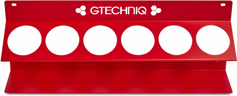 A falra szerelhető tartó 6 db 500 ml-es Gtechniq palack befogadására alkalmas. A készülék kiváló minőségű acélból készült, és matt piros porszórt bevonattal rendelkezik. Mindegyik tartó lézervágott Gtechniq logóval és hatszög alakú dizájnnal van ellátva. A bevonattartó mérete 495mm széles x 95mm mély x 180mm magas. Fali rögzítőcsavarokat nem tartalmaz.