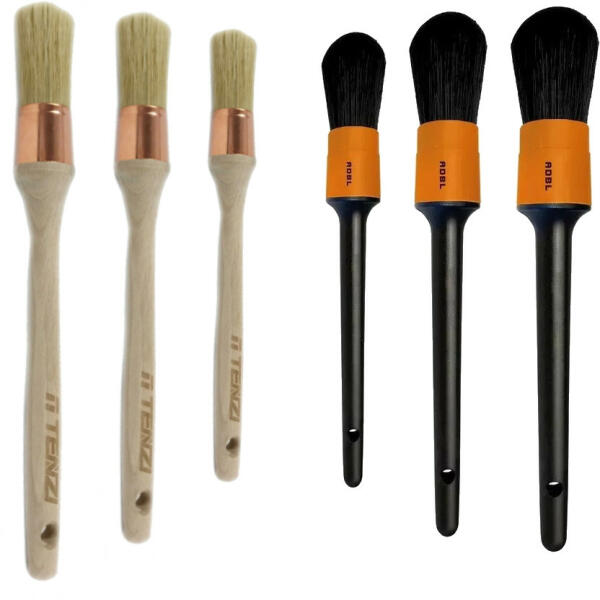 Professzionális autókozmetikai ecsetek szettben. Három darab ADBL Round Detailing Brush és három darab Tenzi Natural Brush alkotja a készletet. Ennek segítségével minden méretű ecseted lesz, amire szükséged van, ráadásul természetes és szintetikus sörtékkel.