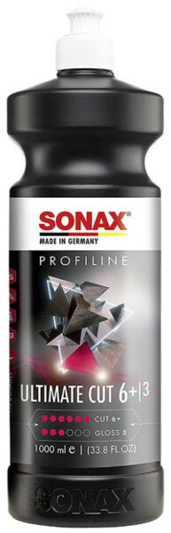 Sonax 239300 Profiline Ultimate Cut 6+ polírpaszta, 1 lit A Sonax Profiline Ultimate Cut 6+ polírozó paszta eltávolítja a fényezésről a karcolásokat, csiszolási nyomokat, porzárványokat. Prémium csiszolószemcséket tartalmaz, amelyek gazdaságos és pormentes alkalmazást tesznek lehetővé az innovatív Low Dust technológiának köszönhetően. Eltávolítja a maró anyagok, madár