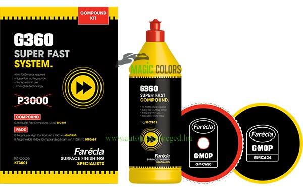 Farecla G360 Super Fast polír kiscsomag Szuper gyors eredmény a P1500 csiszolási nyomokon, így nincs szükség P3000-ig való finomításra Szupergyors vágás Farecla G360 Super Fast polír kiscsomag G360 szupergyors vegyület G moppal A Super High Cut Pad könnyen csúszik a felületen és gyorsan megszünteti a P1500 csiszolási nyomokat. Ez feleslegessé teszi a P3000 használatát, csiszo