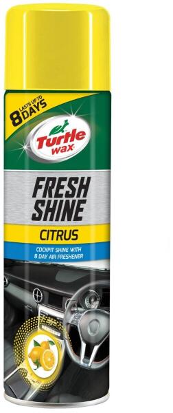 Turtle Wax Fresh Shine visszaadja a belső műanyag felületek eredeti fényét, gyorsan, egyszerűen és könnyen használható spray. Egyedi formulájának köszönhetően az illata akár 8 napig tart, hiszen az illatanyagok fokozatosan szabadulnak csak fel. 5 illatban elérhető. Illat: citrusKiszerelés: 500ml