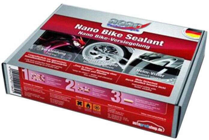 Pro-Tec Nano Bike Sealent Tisztító készlet, karbantartás, nano védelem, motorkerékpár burkolatokhoz, felnikhez, sisakellenző Ez az anyag hosszú távú védelmet nyújt a környezeti hatásokkal szemben. A szennyeződéseket könnyű eltávolítani, pl. fékpor és rovarok. A tömítő készlet tisztító oldatot, kerékvédelmet és plexi védelmet tartalmaz. Egy készlet elegendő legal