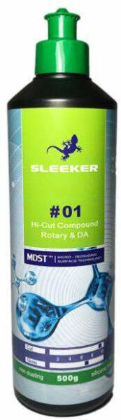 A Sleeker Hi-Cut 01 egy új generációs professzionális polírozó paszta, amely rövid időn belül eltávolítja a P1500-P2000 szemcseméretű csiszolási nyomokat, kiváló felületet hagyva, páratlan vágási és fényesítő tulajdonságokat kínál. Nem porzik Nagyon hatékony karcálló UHCC lakkok, beleértve az UV-re keményedő lakkokat is. Töltő anyag, és szilikon mentes Kiválóa