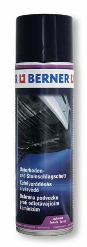 Berner alvázvédő spray fekete Berner kőfelverődés elleni- és alvázvédelem. Berner alvázvédő spray gépkocsi- fenéklemezek, sárvédők, kerékdobok, mellső és hátsó köténylemez stb. tartós réteggel való ellátására. Gyorsan szárad. Véd a kőfelverődéssel és a korrózióval szemben. Ellenáll a víznek és a szórt sónak. Felhordáskor nem képződik köd, nem csepeg.