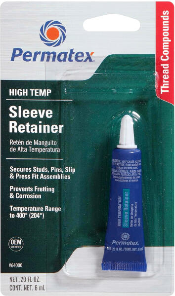 A Permatex HIGH TEMPERATURE SLEEVE RETAINER 64000 egy magas hőállóságú persely- és csapágyrögzítő, amely kiváló minőségű, egykomponensű, oldószermentes, gyorsan keményedő, anaerob ragasztó- és tömítőanyag. Ez a termék ideális választás olyan alkalmazásokhoz, ahol a nagy hőmérsékletek és a kemény műanyag állagúvé válás szükséges, mivel ez biztosítja a szor
