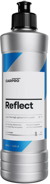 CarPro Reflect Finish Polírozóanyag 250ml A nanotechnológiás bevonatok CQuartz sorozatának kiegészítésére kifejlesztett CarPro Reflect az egyik legfejlettebb befejező anyag a piacon. Finom, gyorsan halványodó csiszolóanyagok és kifinomult nanorészecskék szabadalmaztatott keverékével a Reflect gyorsan eltávolítja a hologramokat és a könnyű mosásból eredő mikro karcokat, í