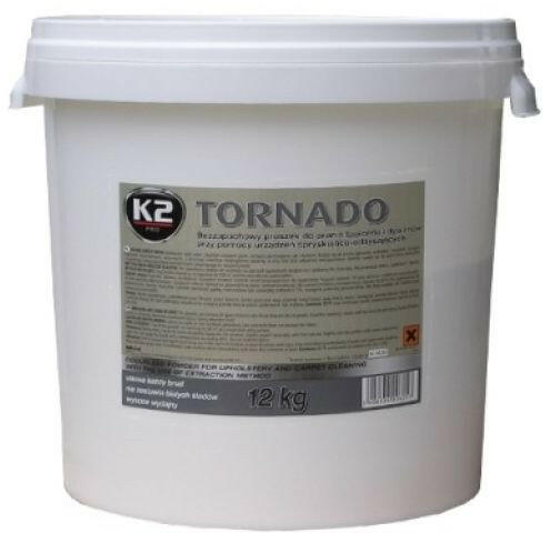 A K2 Tornado gyengén habzó, szagtalan por autókárpitok, bútorok, textilburkolatok és szőnyegek mosására. Koncentrált, rendkívül hatékony és nagyon gazdaságos. Elszívásos mosóporszívókkal, kárpit tisztítógépekkel való használatra tervezték, mellyel a legjobb tisztítóhatást biztosítja. A K2 Tornado gyengén habzó, szagtalan por autókárpitok, bútorok, textilburkolat