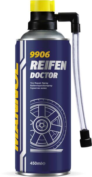MANNOL Reifen Doctor 9906A Reifen Doctor egy könnyen használható speciális permetezőszerszám a kamra- és cső nélküli gumiabroncsok öntött és lepecsételt kerekeken történő szétbontása nélküli vészhelyzeti javításához. A keletkező hab gyorsan és megbízhatóan lezárja az 5 mm-es átmérőjű szúrásokat és szivárgásokat azáltal, hogy a levegővel való kölcsönhatá