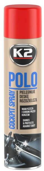 A K2 POLO COCKPIT spray a műszerfal ápolására és tisztítására. RAGYOG, ÉS VÉD A POR ELLEN A felhasznált nanorészecskék tökéletesen behatolnak az anyag szerkezetébe, hogy kihozzák annak eredeti színét és fényét, miközben hosszú távú védelmet nyújtanak a szennyeződések és porok újbóli lerakódásával szemben. Különösen ajánlott műszerfalakhoz, műanyagokhoz, gu