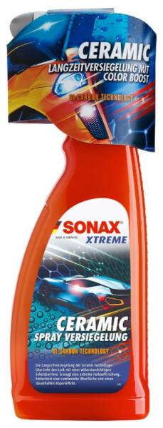 Sonax 257400 Ceramic Spray Versiegelung kerámia bevonat spray , 750ml A Sonax Ceramic Spray Versiegelung kerámia bevonat spray megvédi a kezelt felületet a szennyeződéstől, a rovaroktól és a közúti sótól, ami sokkal könnyebbé teszi a jármű mosását. Visszaállítja a színeket és tükörszerű ragyogást biztosít. A meglévő kerámia bevonatok frissülnek a használatával. Ex