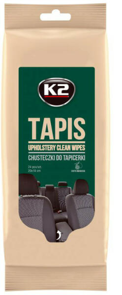 A legjobb minőségű nedves törlőkendők az autó tisztán tartása érdekében. Minden sofőr számára szükséges felszerelés. A K2 TAPIS szövet és mindenféle textil felület, kárpit tisztítására szolgáló kendő. Gyorsan és könnyedén eltávolítja a szennyeződéseket és foltokat, tiszta, friss, kellemes illatú felületet hagyva maga után. A törlőkendők mérete 20x18 cm .