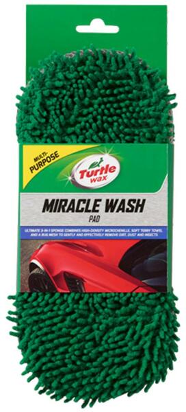 Turtle Wax Miracle Wash pad 3 in 1, prémium autómosó szivacs A Turtle Wax Miracle Wash pad 3 in 1, prémium autómosó szivacs három különbözõ anyagú felülettel rendelkezik a különbözõ szintű mosási teljesítmény elérésének érdekében. A Mikro-zsenilía szivacsfelület kiváló habzást biztosít és hatékonyan eltávolítja a koszt és szennyezõdéseket. Az oldalán találh