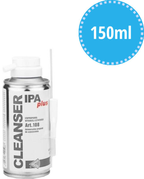 Termék részletekCLEANSER IPA Plus kefés spray 150ml (izopropanol 100%) Hígító és tisztítószer elektromos csatlakozók, audió- és videófejek, CD és DVD lencsék, TV képernyők, mobiltelefonok és táblagépek tisztításához. A feltüntetett felületekről hatékonyan távolítja el a szennyeződést és ujjlenyomatot. Hővezető paszták, ragasztómaradék, könnyen oldódó szennyeződések és raga