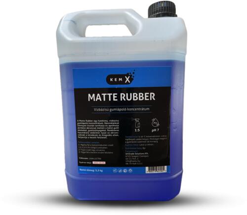 A Matte Rubber egy hatékony, vízbázisú gumiápoló koncentrátum. Használatával könnyen tisztán tarthatja és ápolhatja járműve abroncsai mellett a külső gumi elemeket, gumiszőnyegeket. Rendszeres használata védelmet nyújt az abroncsoknak a töredezés és öregedés ellen, feljavítja a kezelt felületet. A Matte Rubber egy hatékony, vízbázisú gumiápoló koncentrátum. Haszn