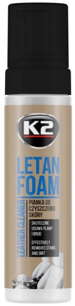 A K2 Letan Foam egy puha habos tisztítószer a sima bőrhöz. Semleges pH-jú, biztonságosan eltávolít minden szennyeződést és foltot a bőrkárpitokról, kiegészítőkről és bútorokról. Visszaállítja a természetes megjelenést. Útmutatás: Ellenőrizze a termék használatát nem feltűnő területen. 1. Porszívózza fel a tisztítandó felületet. 2. Rázza fel az üveget, majd