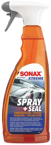 Sonax 243400 Spray and Seal, fényezésvédõ és tömítõ spray, 750 ml A SONAX Xtreme Spray+Seal tömítõanyaggal az egész jármű tartósan lezárható és megvédhetõ a szennyezõdésekkel szemben mindössze 5 perc alatt. A lakk felületének színmélysége fokozódik a folyamat során és ez tükörhatást eredményez, valamint kiváló víz- és kosztaszító hatás érhetõ el másodpe