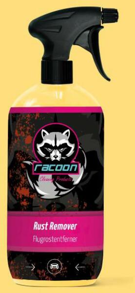 A Racoon rozsda eltávolító egy rendkívül hatékony, rendkívül gyorsan működő szálló rozsda eltávolító. Mire jó? A fényezésen megtapadó fémszemcsék fékpor, vagy ipari környezetben szállópor formájában a légkörben lévő molekulák eltávolítására. A megtapadó fém részecskék savas közeget alakítanak ki ami károsítja a fényezést és felületi rozsdásodáshoz