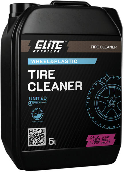Elite Detailer Tire Cleaner Gumiabroncs Tisztító 5L Abroncs tisztító, innovatív és rendkívül hatékony szer abroncsok mosásához, zsírtalanításához és tisztításához. Tökéletesen lemossa a korábban felhordott ápolókat a gumiabroncsokról, tökéletesen zsírtalanítja az abroncsokat, és felkészül egy új réteg ápoló felvitelére. A gumiabroncs-tisztító hatékony koncen