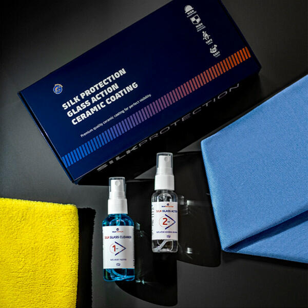 Silk Protection Glass Action Ceramic Coating készlet - Üveg kerámia bevonat Szett tartalma: 1 DB SILK Protection Glass Action bevonat 30 ML 1 DB SILK Glass Cleaner 50 ML 1 DB SILK Microclean kendő 1 DB MicroCar Üvegtisztító kendő Hatékonyság: 9-12 hónap PH Toleranncia 2-11 Alkohol Tolerancia: Full Starting Speed: 65-70 km/H Silk Protection Glass Action Ceramic Coating készlet - Üveg k