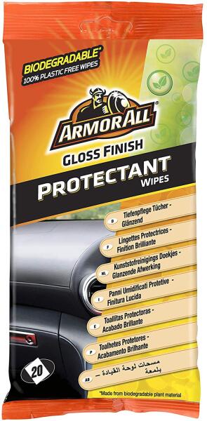 Armor All Nedves törlőkendő Az Armour All Gloss Finish Protectant Wipes gyors és egyszerű módja a műszerfal tisztításának, fényesítésének és védelmének egyetlen egyszerű lépésben. Ezek a biológiailag lebomló, 100%-ban műanyagmentes, növényi alapú törlőkendők segítenek abban, hogy a műszerfal hosszabb ideig újszerű legyen, miközben védelmet nyújtanak a káros UV-