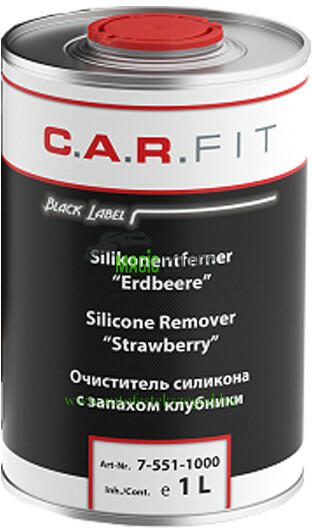 C. A. R. Fit Eper illatú Szilikon lemosó (1L) Eperillatú, szerves oldószer-alapú tisztítószer, amely eltávolítja a kátrányt, szilikont, olajat, zsírt és egyéb szennyeződéseket a különféle fém- és műanyagfelületekről, valamint poliészter gittekről és régi vagy friss bevonatokról. A C. A. R. Fit Eper illatú Szilikon lemosó (1L) egy olyan oldószeres tisztítószer, ame