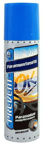 Páramentesítő spray PREVENT 300 ml Megakadályozza a szélvédők, tükrök, ablakok, szemüvegek bepárásodását és homályosodását. A szélvédő belső felületéről eltávolítja a dohányfüst és más szennyeződések okozta fátyolosodást. A levegő páratartalma hajlamos lecsapódni a hideg felületekre. A páramentesítővel történő kezelés hatására azonban a pára apró v