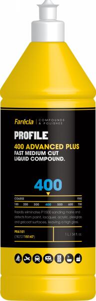 A festett felületek és falakkok legmagasabb vágási és fényességét kínáló Profile 400 Advanced Plus Fast Medium Liquid Compound magasabb árat követel, mint a többi Profile keverék, de kevésbé valószínű, hogy másoknál másodlagos befejező lépésre van szükség – nagyra értékelt időmegtakarítás. nagy volumenű műveleteknél. A G Mop Lambs gyapjúpárnán vagy a G Mop