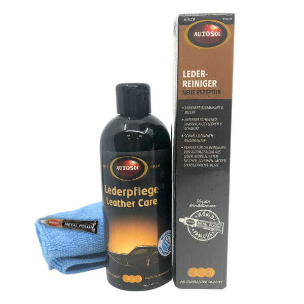 Az Autosol kedvező árú készlete professzionális termékeket tartalmaz a bőr felújításához, tisztításához és védelméhez motorkerékpárokon, autókban és otthon a bőrbútorokon. A készlet tartalmazza: Bőrtisztító paszta tisztító emulzió a bőr impregnálásához mikroszálas kendő Ezen kívül a készlet tartalmaz egy Metal Polish fémfényező tesztelőt is