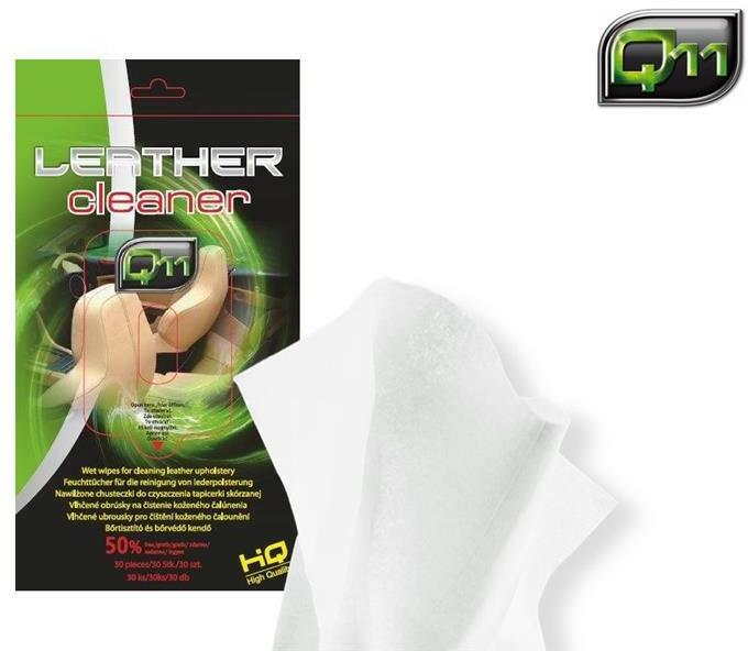 Q11 | bőrápló & tisztító kendő | 30 db Bőr tisztító és ápoló nedves kendő. Tisztítja a felületeket, védi és ápolja az autó bőr kárpitos részeit. Hatékonyan távolítja el a szennyeződéseket, és használata után kellemes illatot hagy maga után. 1 csomag 30 darab kendőt tartalmaz.