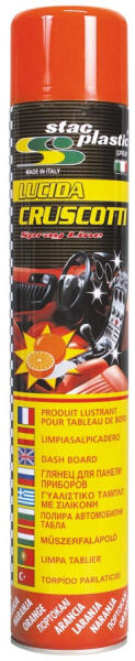 Stac Plastic 778109 Műszerfalápoló spray narancs illat , 750ml Tisztít és ápol minden belső műanyag, PVC és gumifelületet. A műszerfalápolót használva speciális filmréteg keletkezik a használt felületen, ami távol tartja a port és a különböző szennyeződéseket és hosszantartó csillogást ad a műszerfalnak. Elérhető 5 féle illatban. Kellemes narancs illatú. Használa