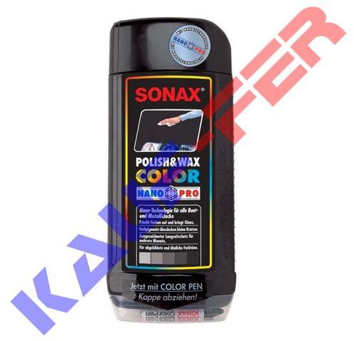 SONAX 296100 Polish&Wax Color, polírozó, fekete, Nano Pro, 500 ml FEKETE . Természetes Karnauba viaszt tartalmazó színes polírozó valamennyi normál és metál lakk felülethez. A benne lévõ színezõanyag befedi az apró karcolásokat. A lakkréteg visszanyeri eredeti ragyogó színét és csillogó magas fényét. A kezelt felületnek hosszan tartó védelmet biztosít. Tisztít, p