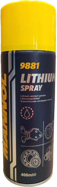 SCT-Mannol 9881 Lithium Spray zsír spray, 400ml SCT-Mannol Lithium Spray univerzális vízálló lítium zsír aeroszol formájában az autók, motorkerékpárok, elektromos berendezések és egyéb berendezések fém, műanyag és gumi alkatrészeinek kenésére, valamint az irodában és otthon. Hatékonyan véd a nedvességtől, a korróziótól és a kopástól. Termék jellemzők: - Megőrzi